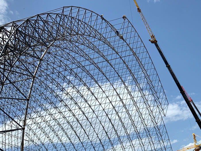 (2)网架加工前应对现场尺寸进行复测,确认无误后方可进行加工、安装;网架制作、运输、安装应遵守《空间网格结构技术规程》JGJ7-2010、《钢网架泉州螺栓球节点》JG/T 10-2009、《钢网架泉州螺栓球节点用高强度螺栓》 GB/T 16939-2016、《泉州钢结构泉州工程泉州施工规范》 GB50755-2012、《泉州钢结构泉州工程施工质量验收标准》 GB50205-2020。